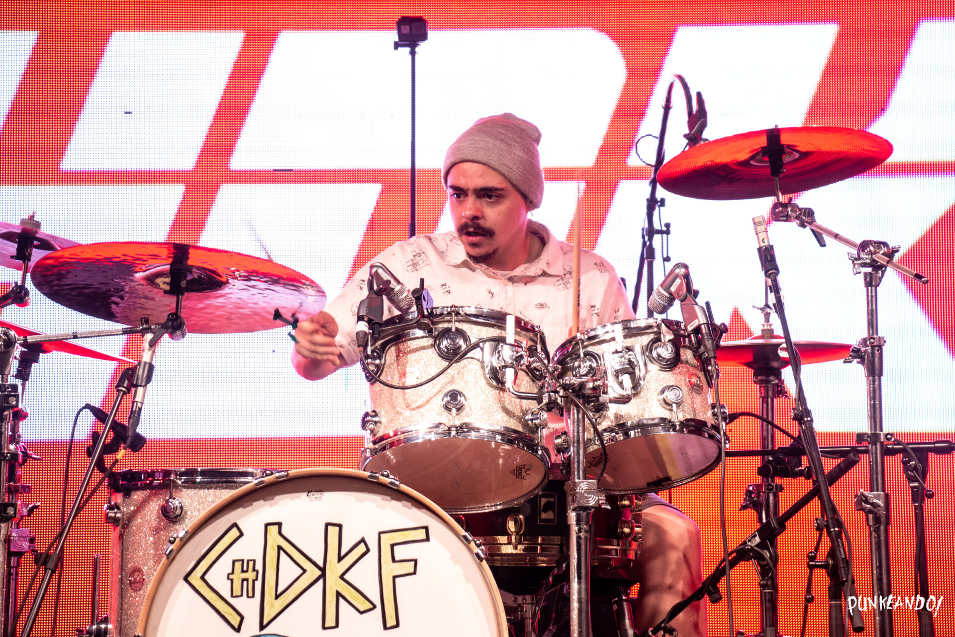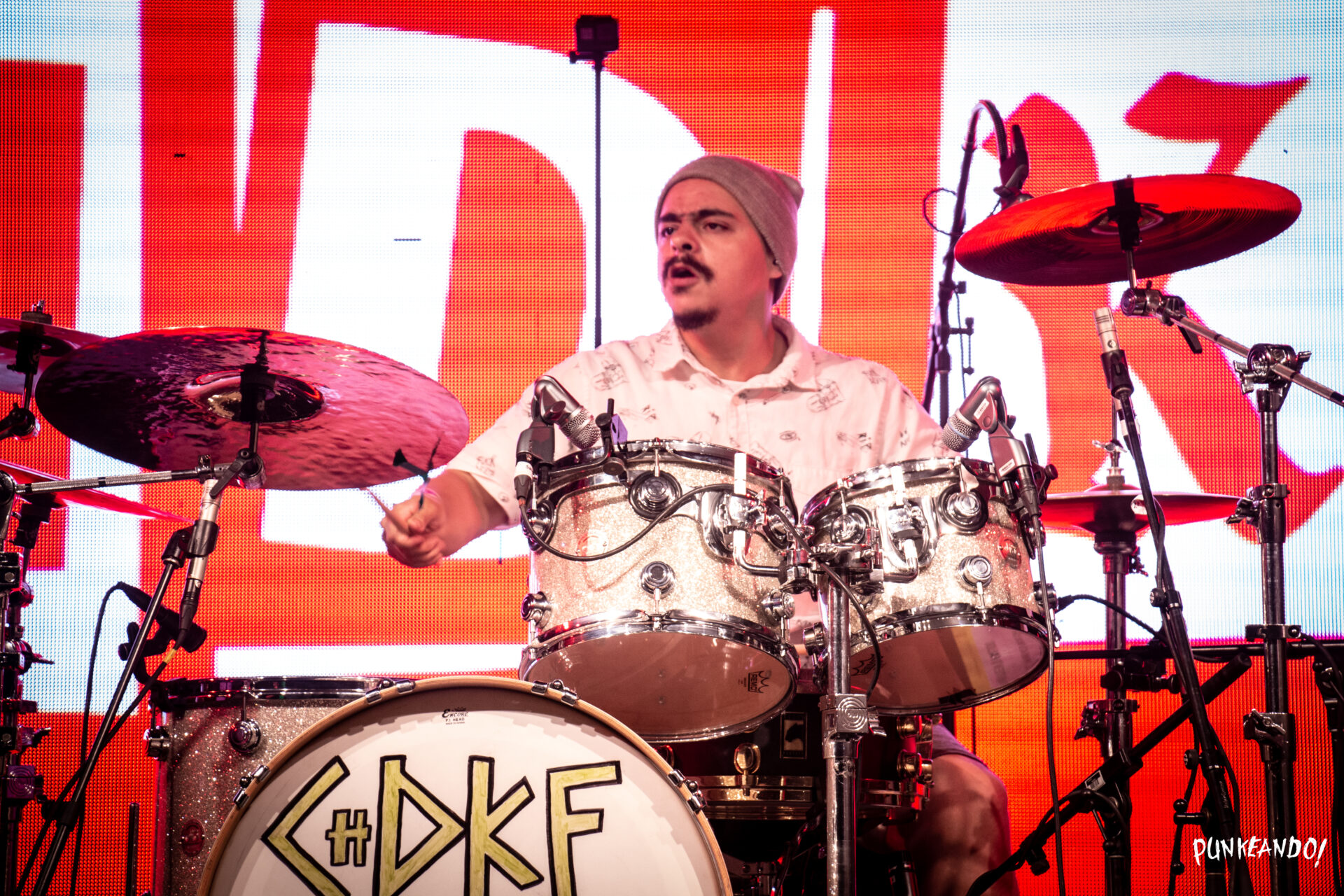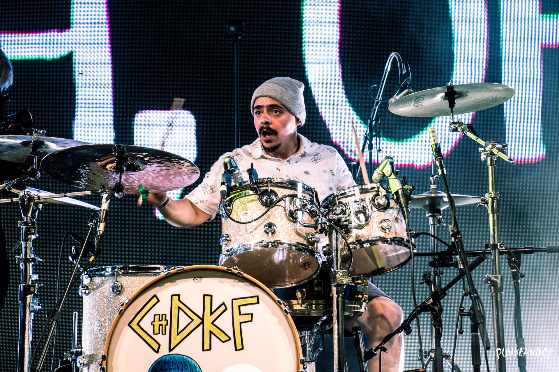 Tras el breve set de Tolidos, llegó el momento más esperado de la noche: el Chingadazo de Kung Fu. La agrupación conformada por Ale Mendoza, Marino Pérez y Toño Martínez, hizo su aparición en el escenario al ritmo de “Los Malaventurados No Lloran” de Pxndx, cancion que fue coreada de manera magistral por todos los asistentes. Abrir su espectáculo con “3 de Noviembre (No me agüito)” fue un acierto, y a partir de ahí, su repertorio de 22 canciones dividido en tres actos mantuvo al público en su mayoría adolescente en éxtasis. Canciones como “Tú no me dices que hacer (obligame perro)”, “No me importa (¡Oh, oh!)”, “Asunto pendiente (Mi playera, tu pijama)”, “Rehab” y “Todo está de lujo (Son chorizos)” sonaron con fuerza y fueron coreadas por los asistentes.