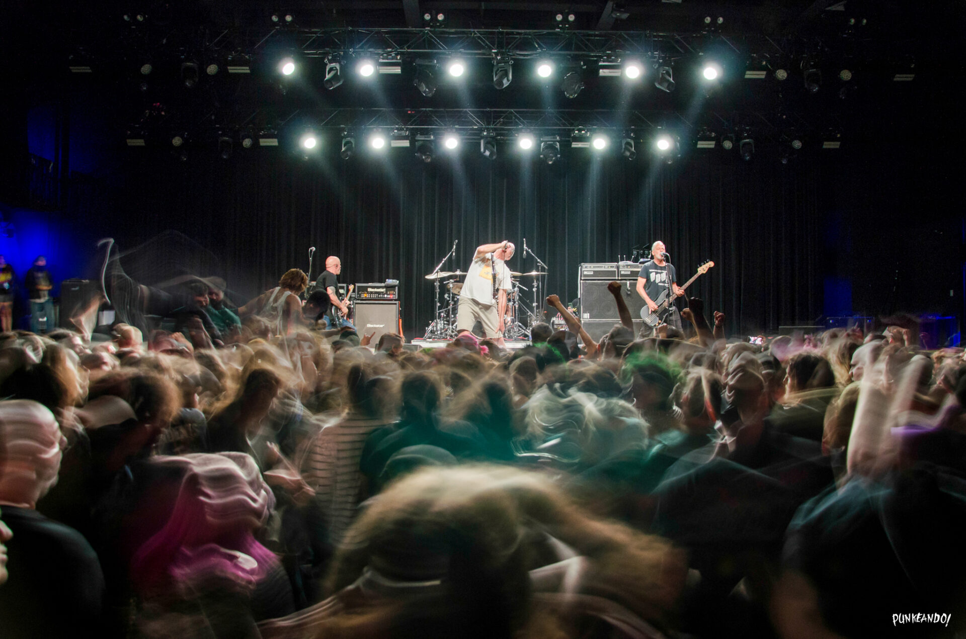 Después de la actuación arrolladora de The Adolescents, era el turno de Circle Jerks de tomar el escenario. La banda formada en Hermosa Beach, California, liderada por Keith Morris y Greg Hetson, inició su set con “Deny Everything”, desatando una ola de energía punk en el recinto. A lo largo de 26 canciones, Circle Jerks mantuvo la intensidad con temas como “Letterbomb”, “In Your Eyes”, “Back Against the Wall” y “Beverly Hills”. El público enloqueció con su icónico cover de “Wild in the Streets” de Garland Jeffreys, mientras que himnos como “Live Fast Die Young” y “Leave Me Alone” resonaron en todo el lugar. La noche culminó con una trilogía explosiva compuesta por “Wasted”, “High Price on Our Heads” y “Red Tape”, dejando a todos con la sensación de haber presenciado un auténtico espectáculo de punk en su máxima expresión.