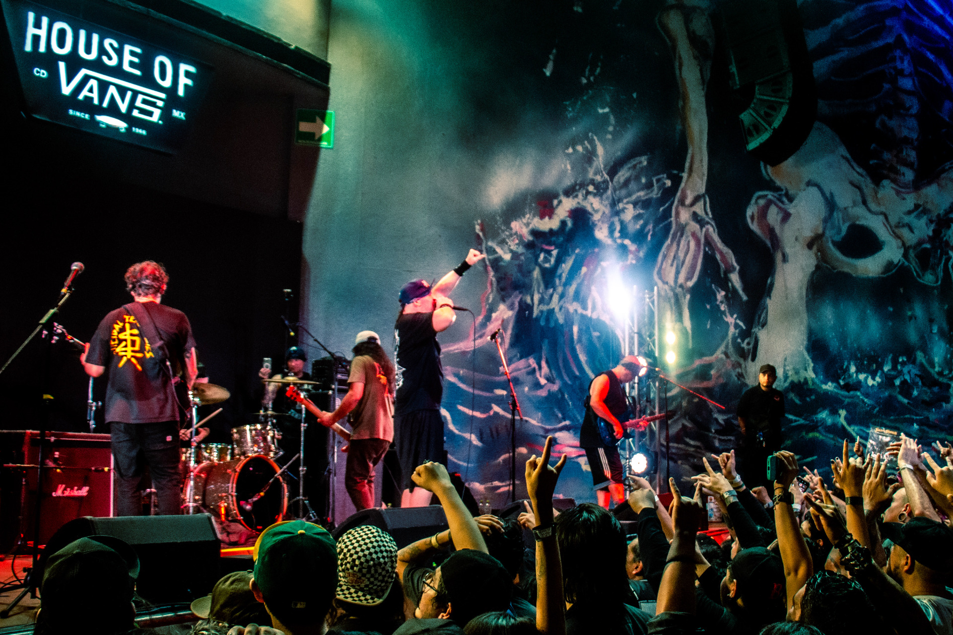 El House of Vans de la Ciudad de México vibró al ritmo de un setlist de 14 temas que no dejó espacio para la calma. Clásicos imperdibles como “You Can’t Bring Me Down”, “War Inside My Head”, “Subliminal”, “Two Sided Politics”, “Institutionalized”, “Get Whacked” y “Send Me Your Money” electrizaron a la audiencia, desencadenando un ambiente cargado de pasión y euforia.